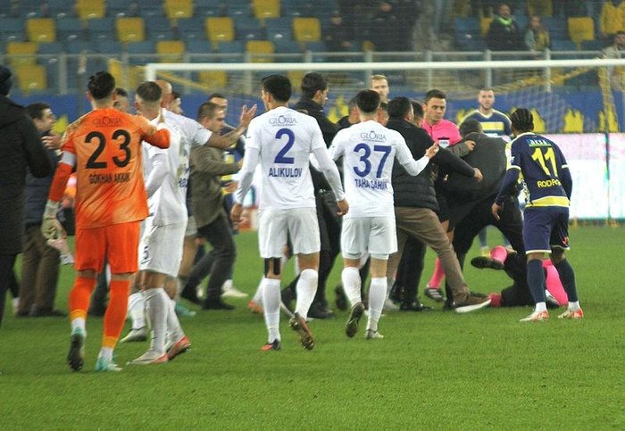 Ankaragücü – Rizespor maçının sonunda hakem Halil Umut Meler’e yapılan saldırının Türkiye Futbol Federasyonu olağanüstü toplanma kararı aldı. Toplantının ardından açıklama yapan TFF Başkanı Mehmet Büyükekşi, Süper Lig ve diğer tüm lig maçlarının süresiz olarak ertelendiğini açıkladı. ASpor’a konuşan Büyükekşi, “Haberi alır almaz yönetim kurulumuzu acil toplantıya davet etti. Her fırsatta hakemleri hedef gösteren herkes bu gece olanları enine boyuna düşünsün. Gazetelerde, televizyonlarda, sosyal medyada, kulüp başkanları ve taraftar iyice düşünsün. Bu gece Türk futboluna yumruk atıldı. Derhal bu olaya karışan herkes bedelini ödeyecek. Bu olayı kesinlikle kabul etmiyorum. Çok üzüntülüyüm. Tüm hakem camiamıza geçmiş olsun.” ifadelerini kullandı.