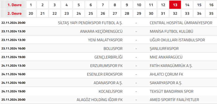 13. HAFTA OYNANACAK MAÇLAR LİSTESİ