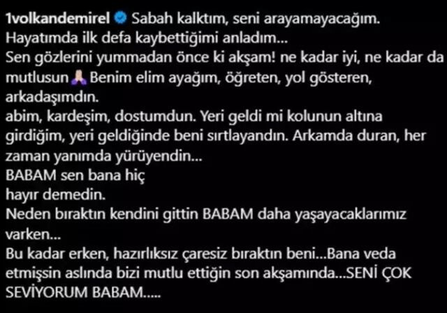 Babasının vefatıyla sarsılan eski milli futbolcu Volkan Demirel, sosyal medya hesabından yaptığı paylaşımla herkesi duygulandırdı.
